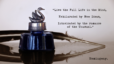 My eyes cruise the titles pausing from time to time. I spy an 1887 edition of Browning. Sipping, my eyes cruise to a note leaning against dark colored texts, my own version of a Longfellow poem. Another sip, my eyes smile as I gaze at The Raven quote perched against the embalming and restorative art texts.